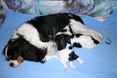 | 20. Juli 2010 - heute ist unser trico-Trio schon einen Tag älter, Mama Beauty kümmert sich wirklich sehr liebevoll um die kleinen . |