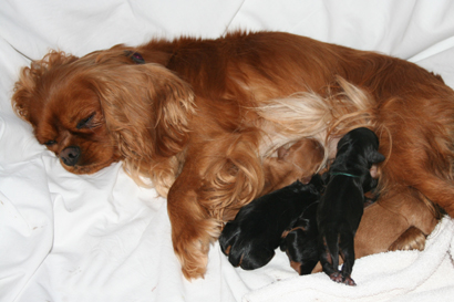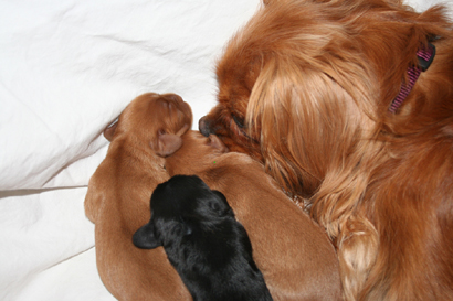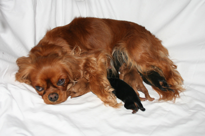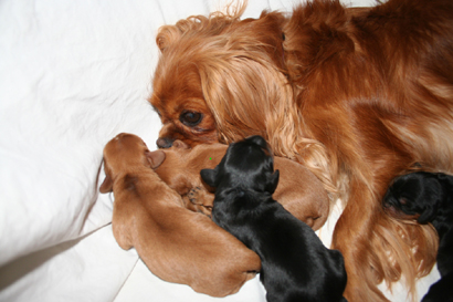 | 02. Mai 2011, uff endlich geschafft - fünf kleinen Rackern hat unsere Queeny das Leben geschenkt . |