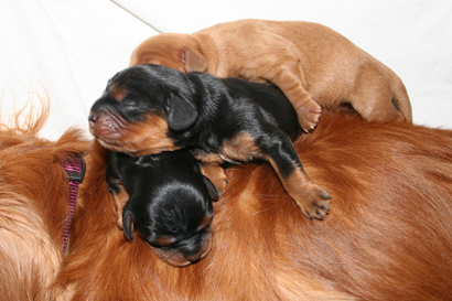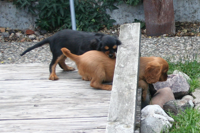 | 20. Juni 2011 - Nun schon sieben Wochen alt und gaaanz schön frech die kleine Rasselbande . |