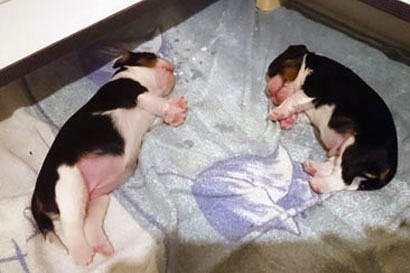 | Freitag, den 07. August 2015, zwischen 01.40 Uhr und 03.35 Uhr morgens, erblickten zwei gesunde Welpen das Tageslicht . Getreu unserem Motto nannten wir sie : GLORIA und GANYMEDES . |